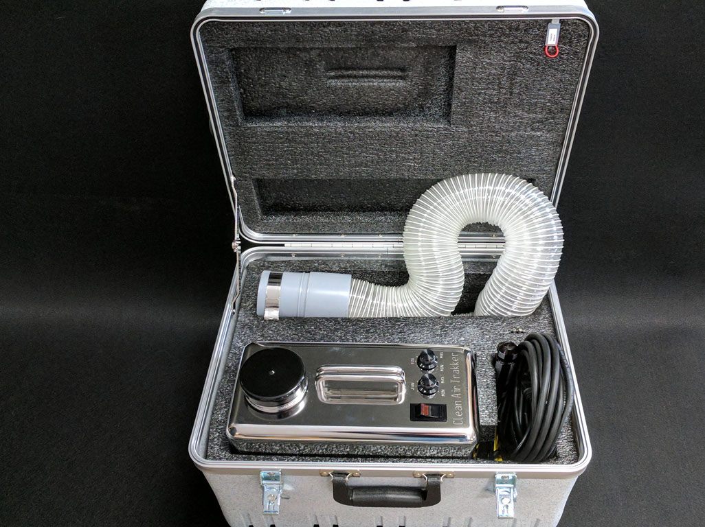 The Clean Air Trakker™ cleanroom fogger is easy to use, portable, reliable and provides excellent results. The unit comes complete with fog producing unit, fog dispersion hose and cleanroom shockproof transportation case. Just add clean water and: